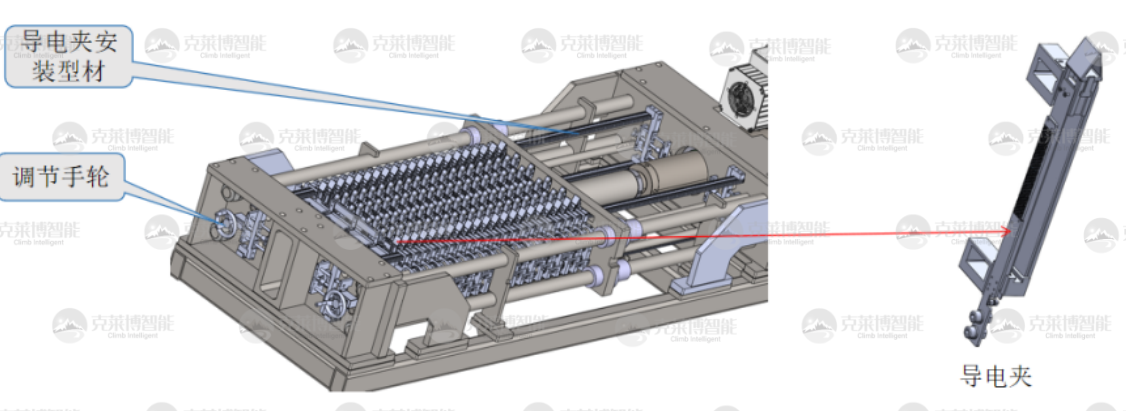 通過(guò)搖動(dòng)手輪,可以調(diào)節(jié)導(dǎo)電夾的中心距,
